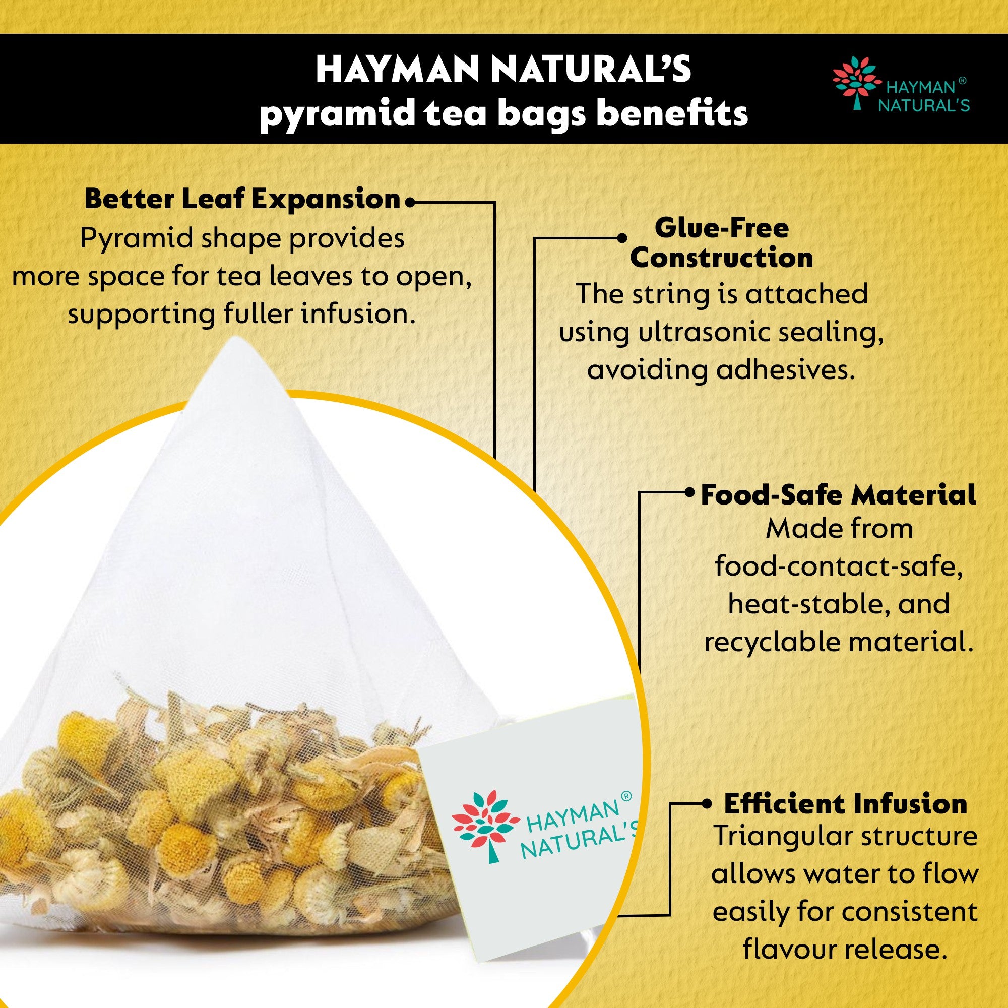Hayman Natural's Chamomile Herbal Tea-30 Pyramid Tea Bags,Caffeine Free,Calm & Relax Tea