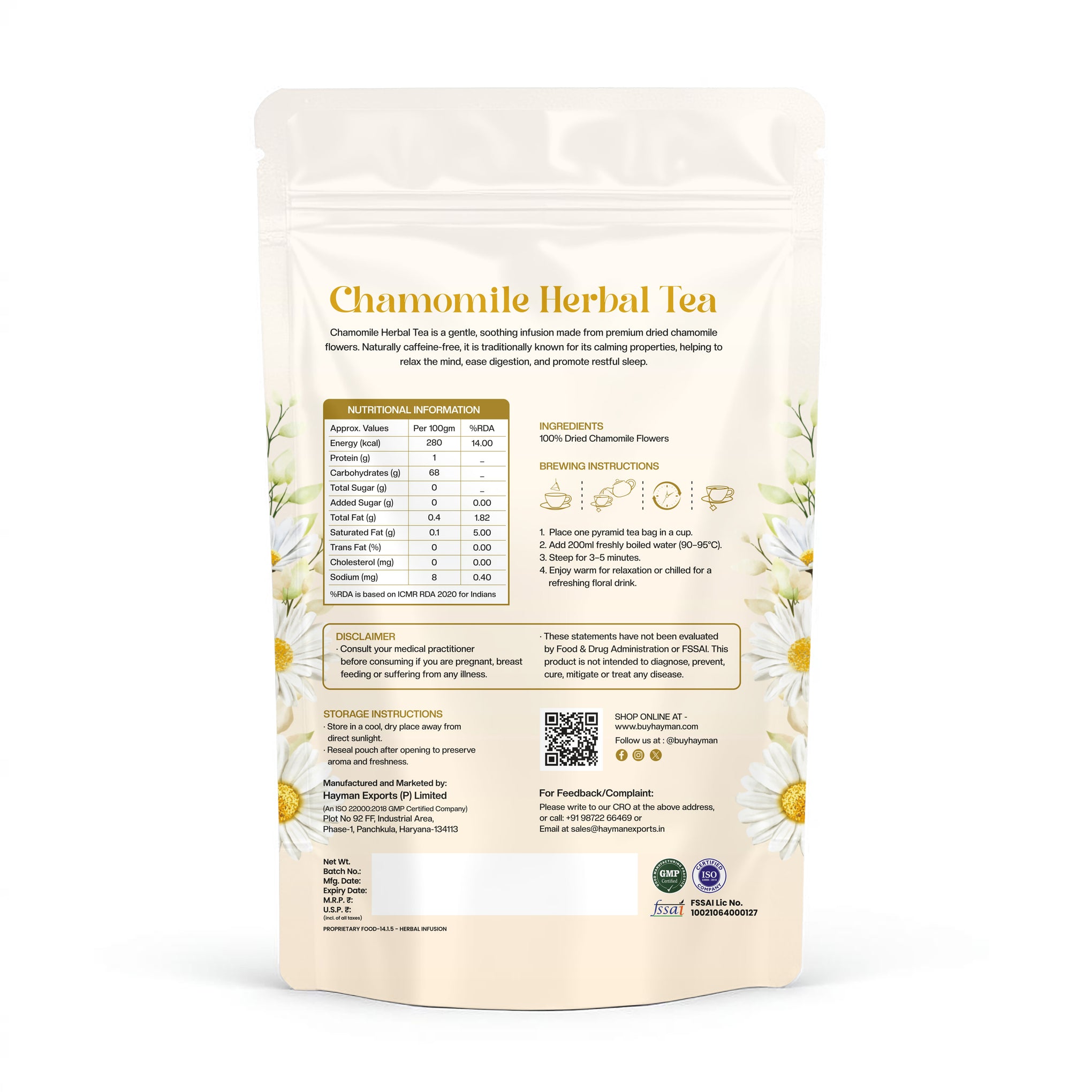 • Pure Chamomile Flower Infusion – Crafted using high-quality chamomile flowers for a smooth, floral taste.