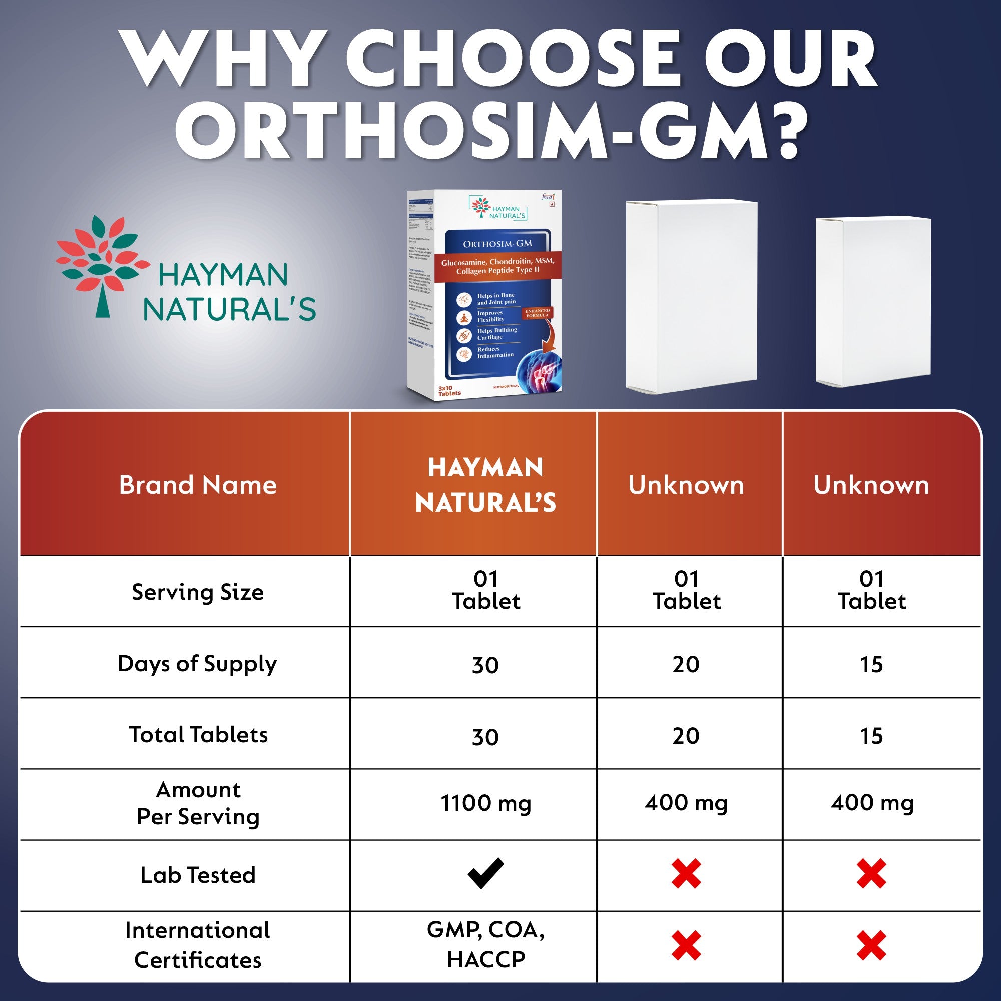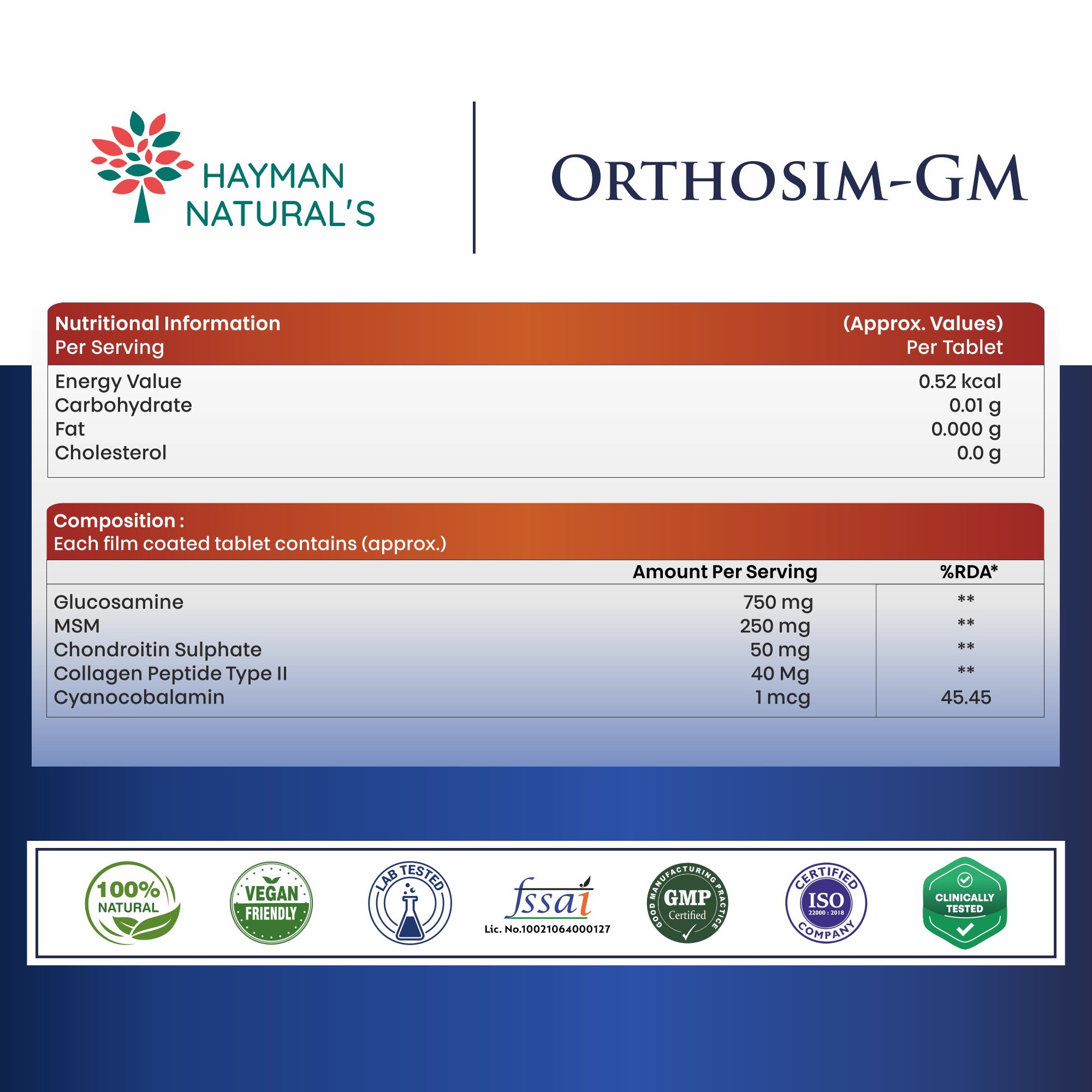 Hayman Natural's Glucosamine Tablets for Joint Support with Collagen, Glucosamine Chondroitin & MSM | Supports Joint Cartilage, Muscle Health & Joint Pain Relief-30 Tablets